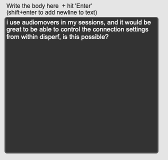 Disperf is a work in progress, and we appreciate any feedback. Please open the bug/feature reporter in Reference > Report bug or request feature