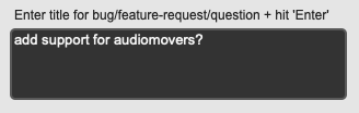 After signing in, decide on a title for your bug report or feature request, enter it into the Title field, and hit enter. For example: